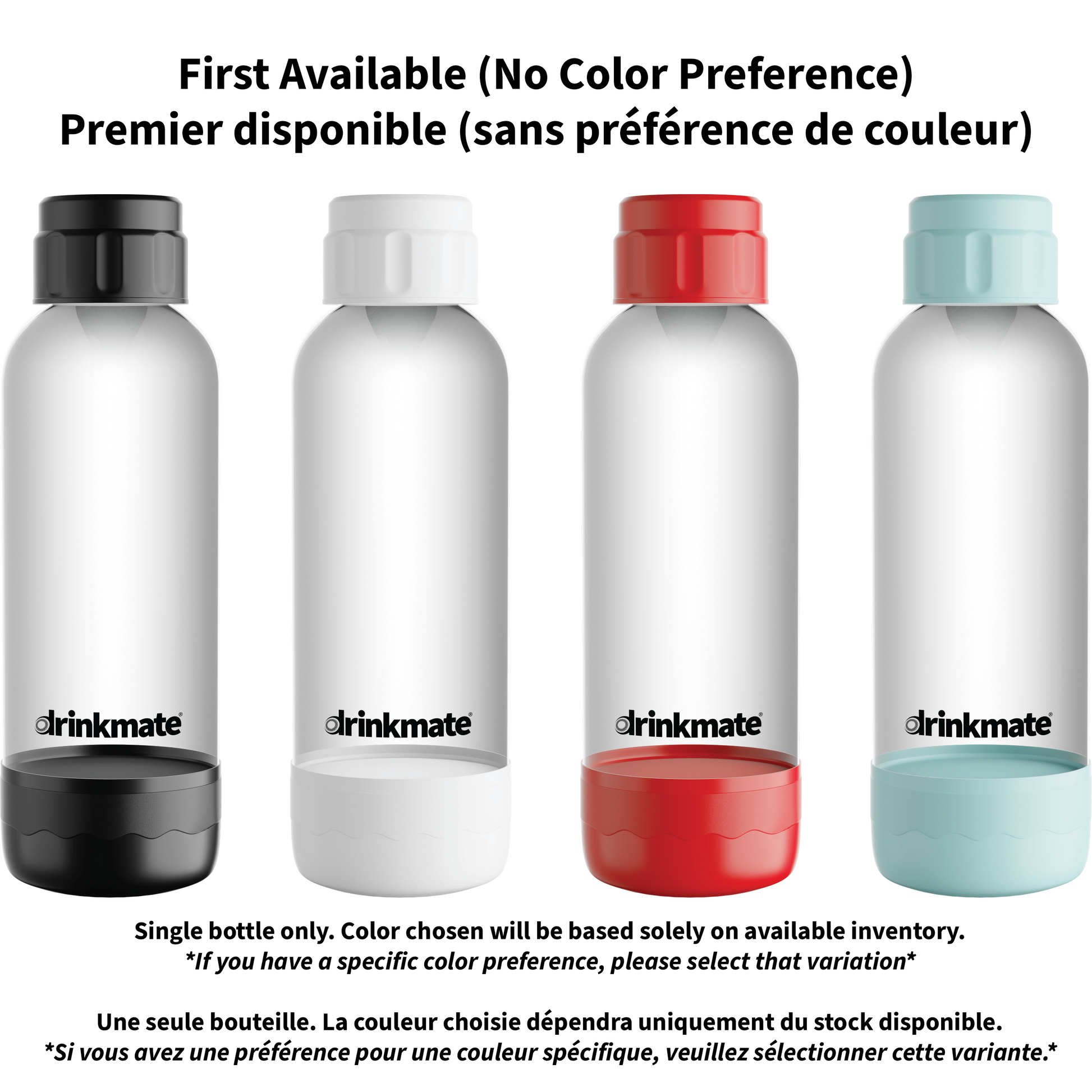 Le Drinkmate ® OmniFizz est actuellement disponible en quatre couleurs : noir élégant, bleu chic, rouge vif et blanc neutre.