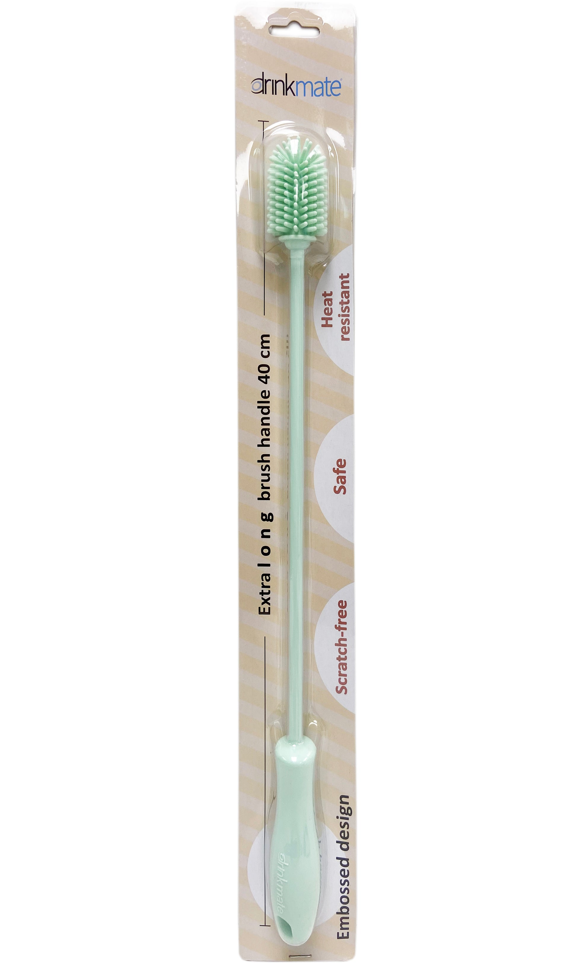 Vos bouteilles PET Drinkmate doivent être nettoyées avec une brosse non abrasive pour éviter d'endommager la bouteille. La nouvelle brosse à bouteille de Drinkmate offre ces caractéristiques utiles :